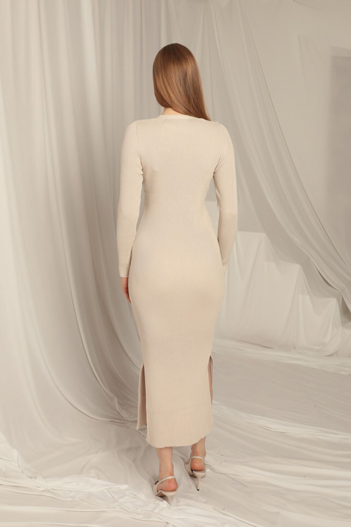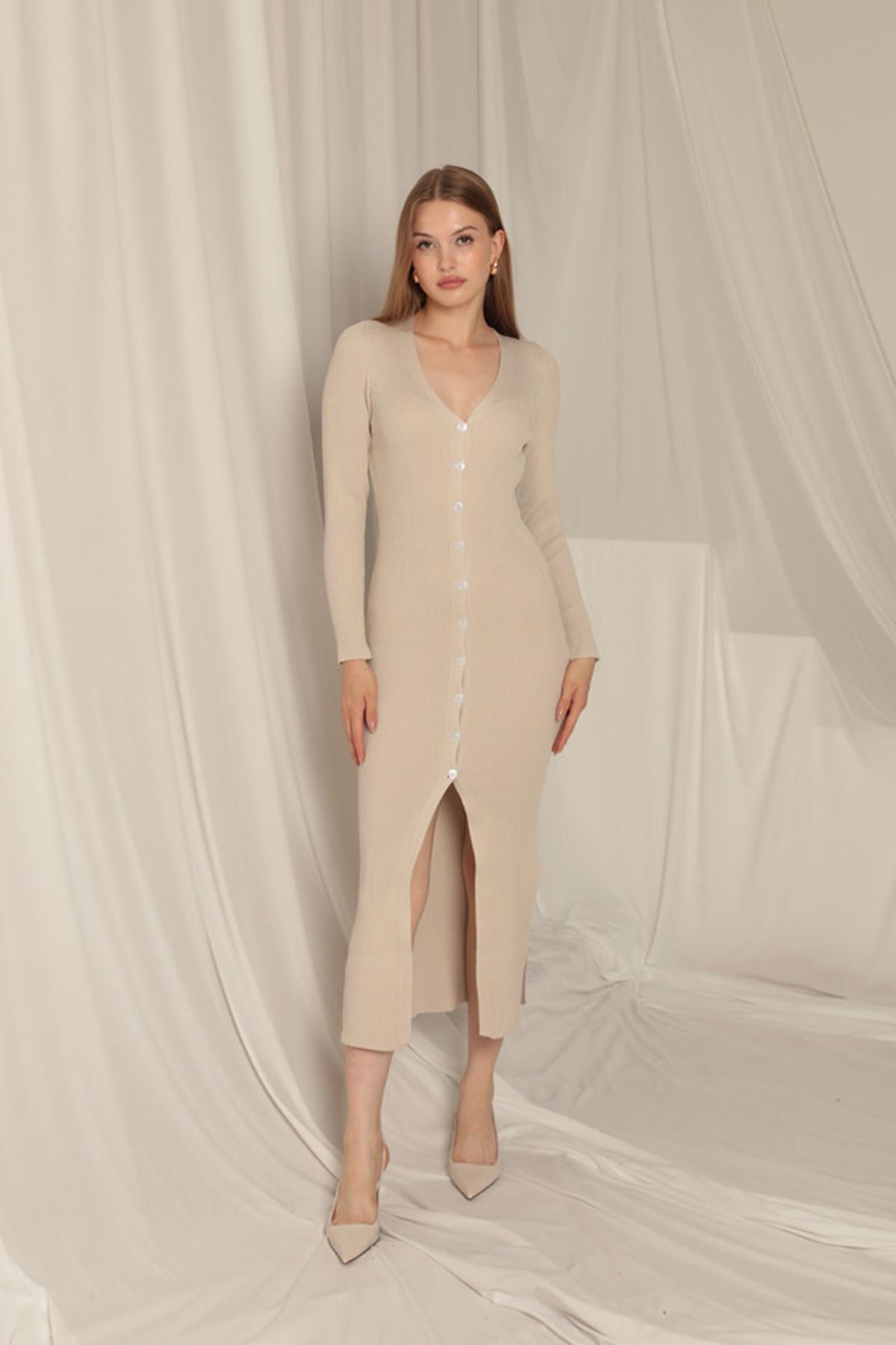 Triko Kumaş Düğmeli Kadın Taş Elbise