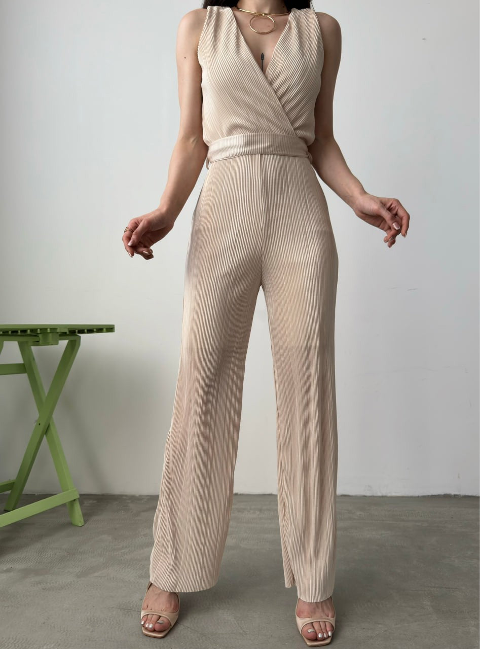 Diger82402V Yaka Kuşaklı Krinkle Tulum