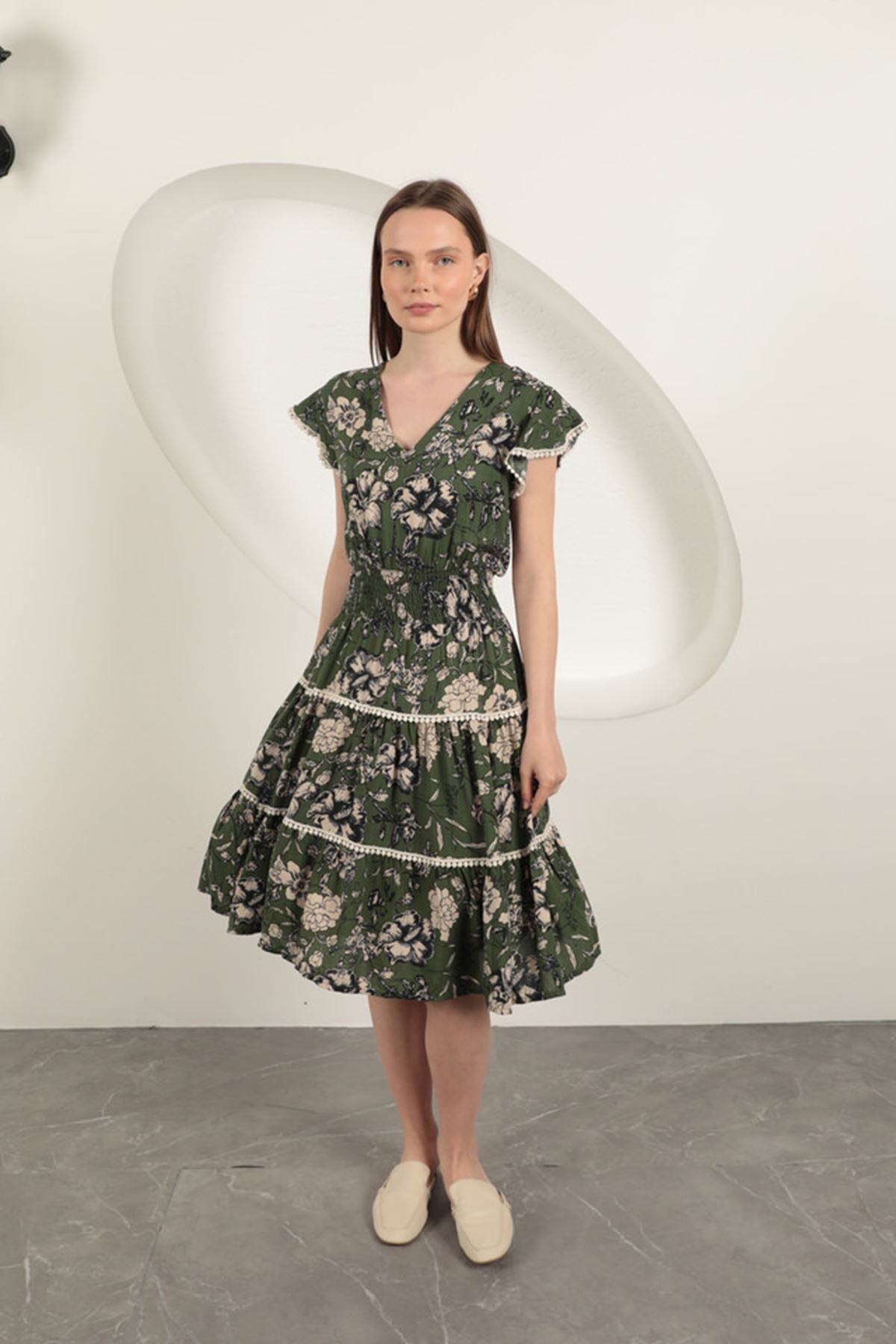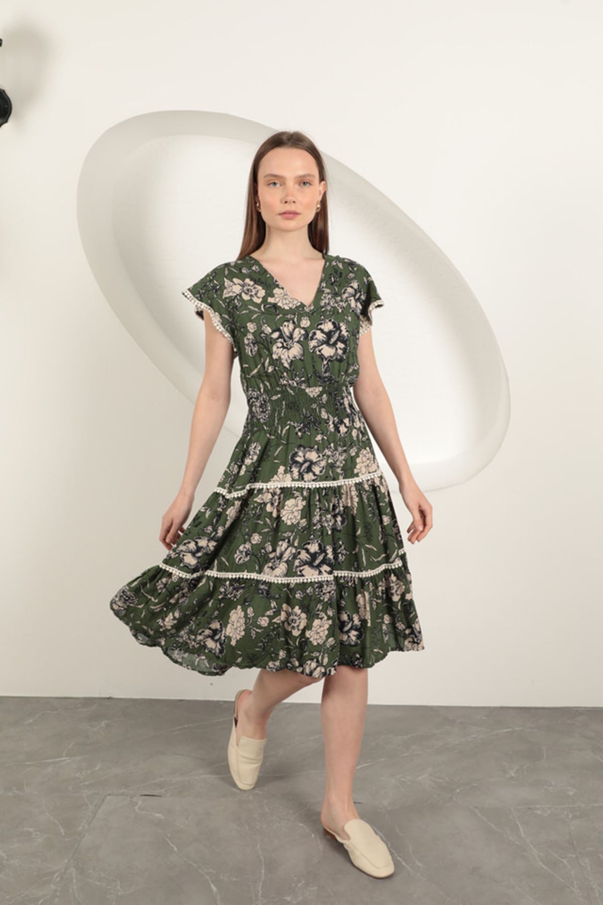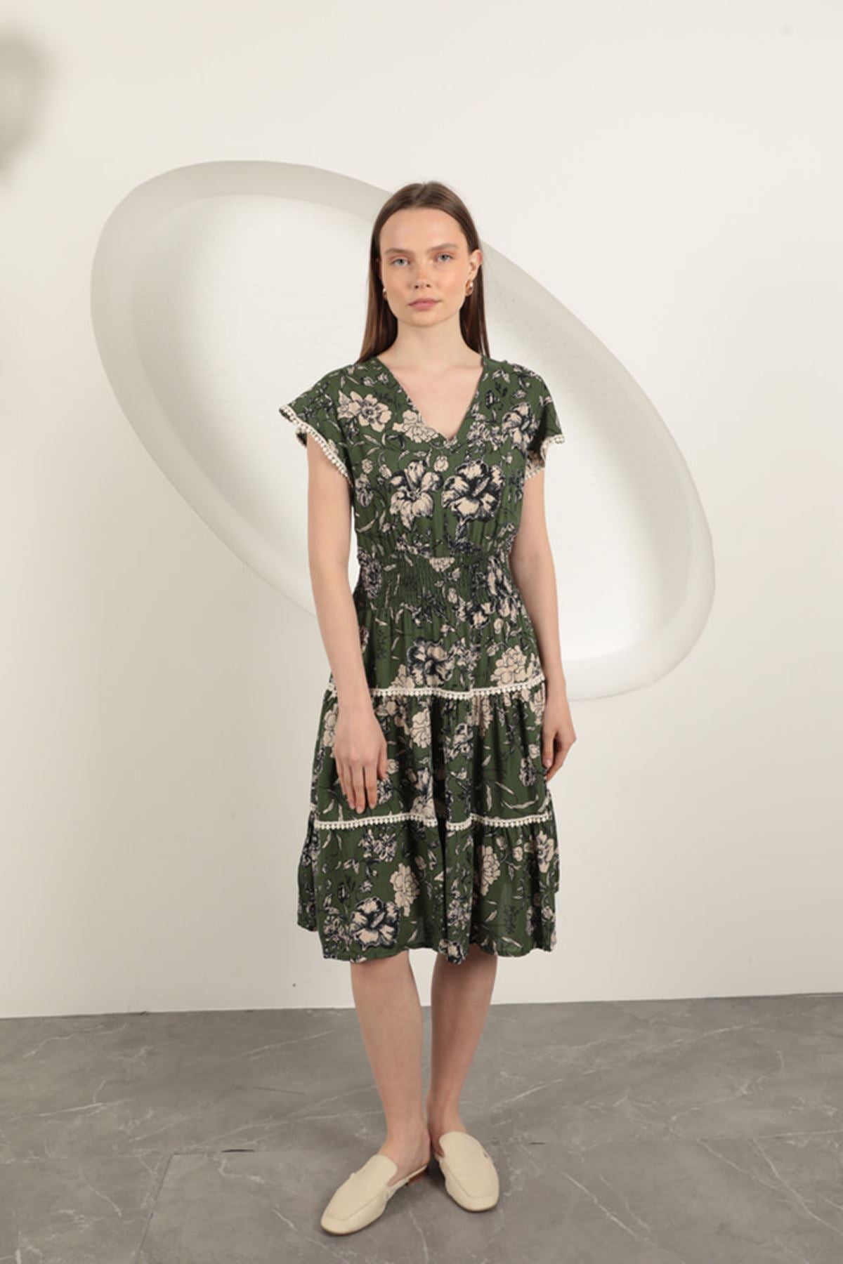 Diger84322Viskon Çiçek Desenli Elbise-Yeşil