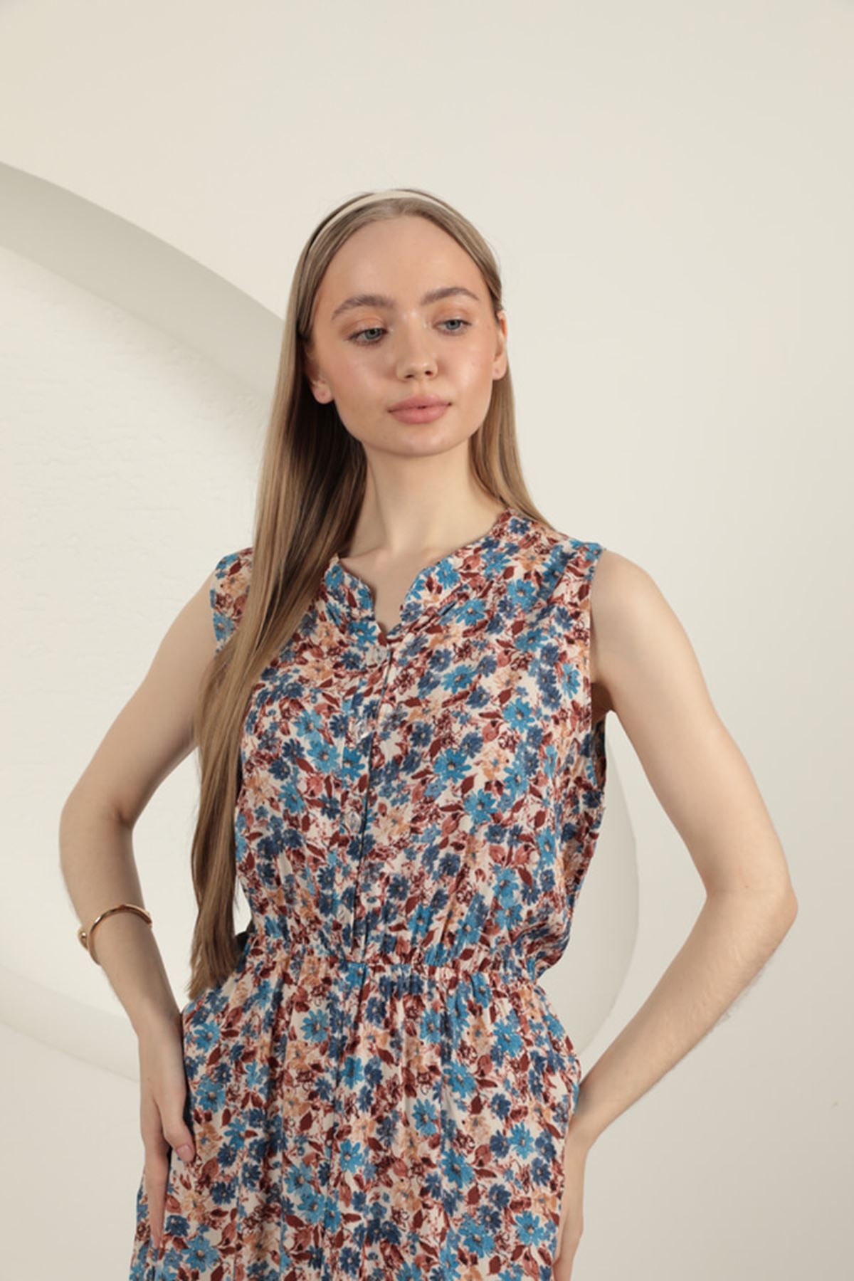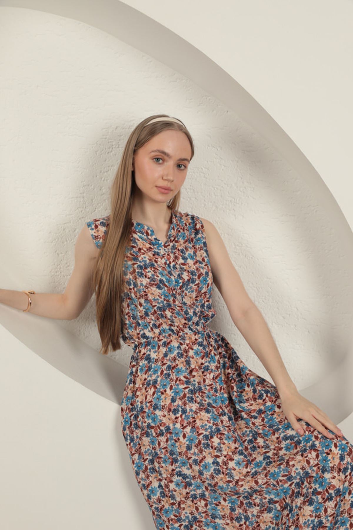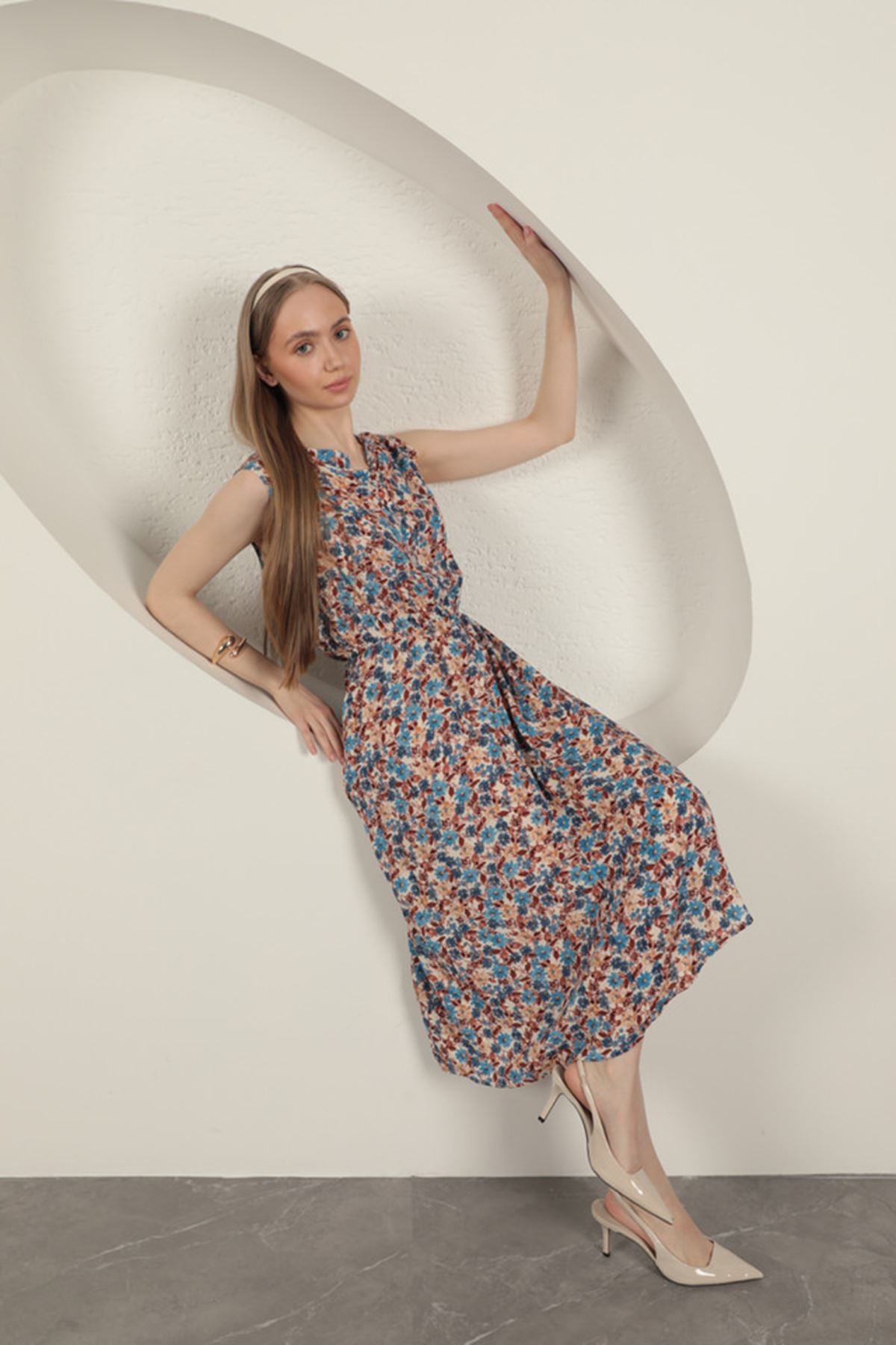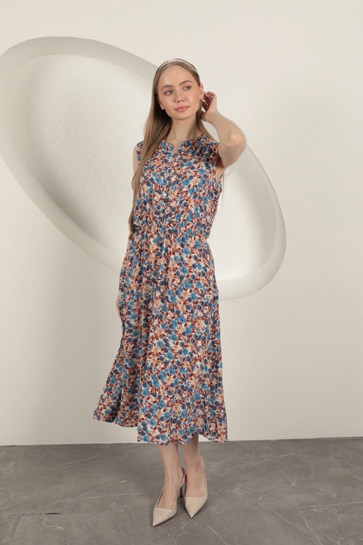 Diger82682Viskon Çıtır Çiçek Desenli Elbise-Mavi