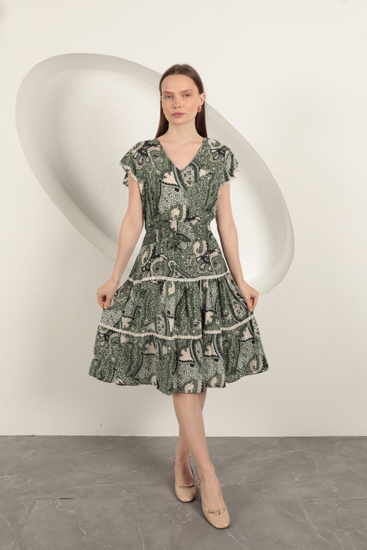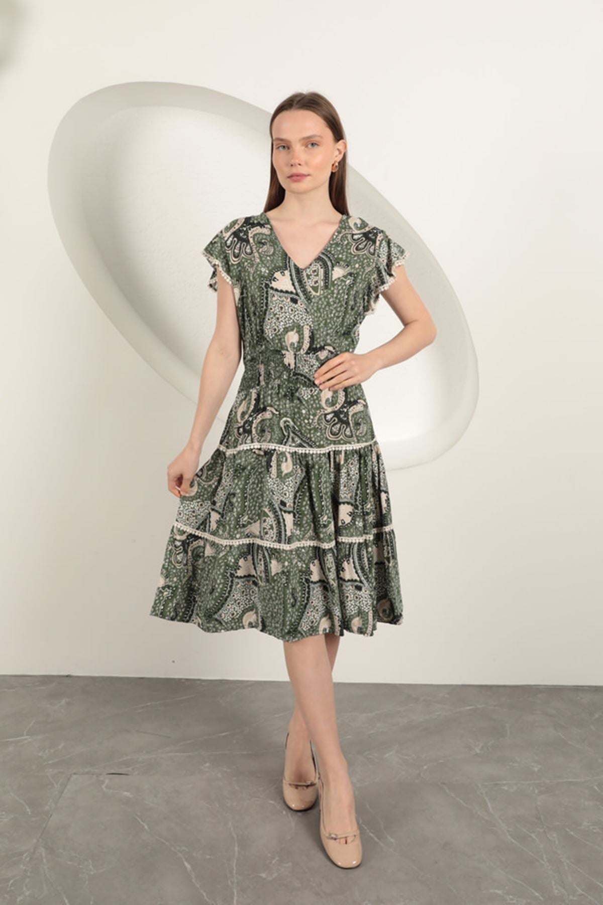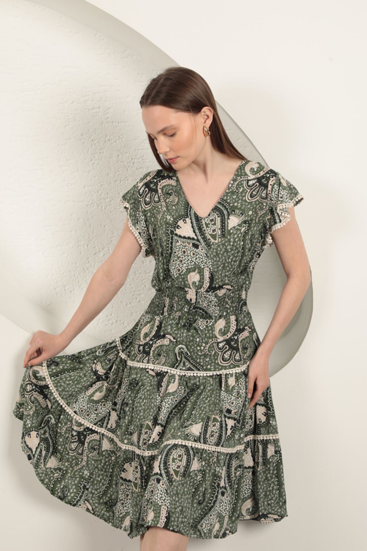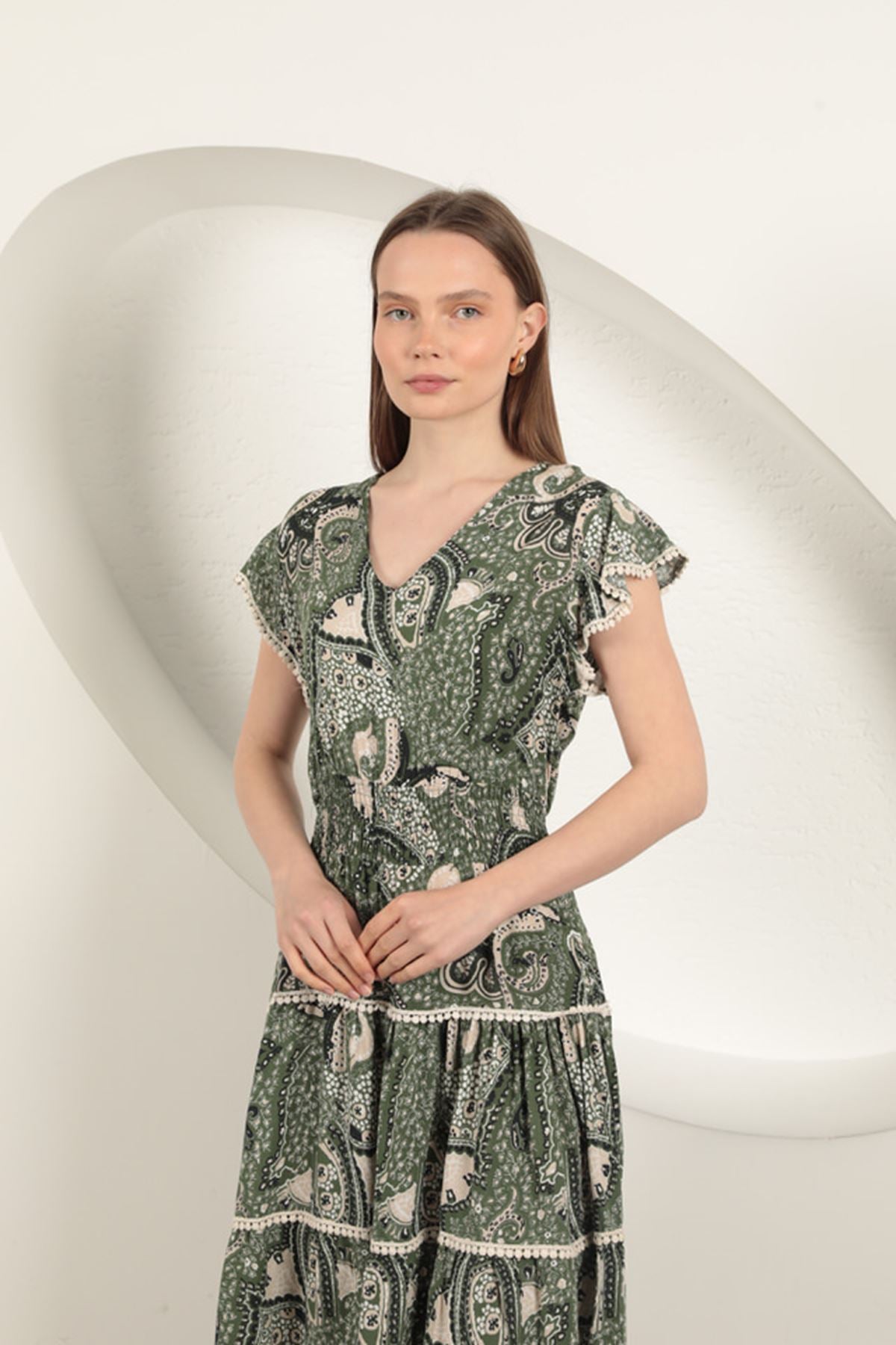 Diger84323Viskon Etnik Desenli Elbise-Yeşil