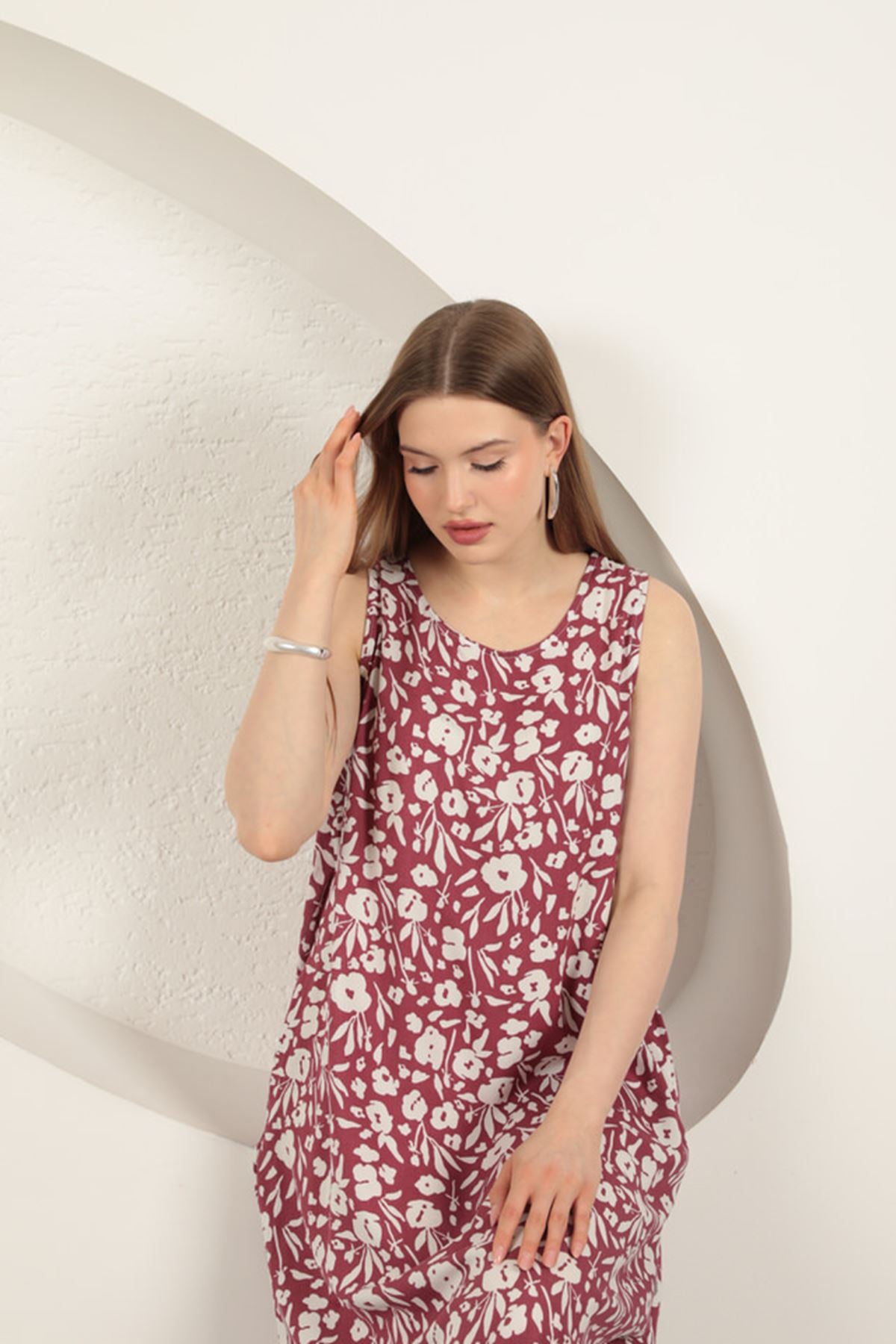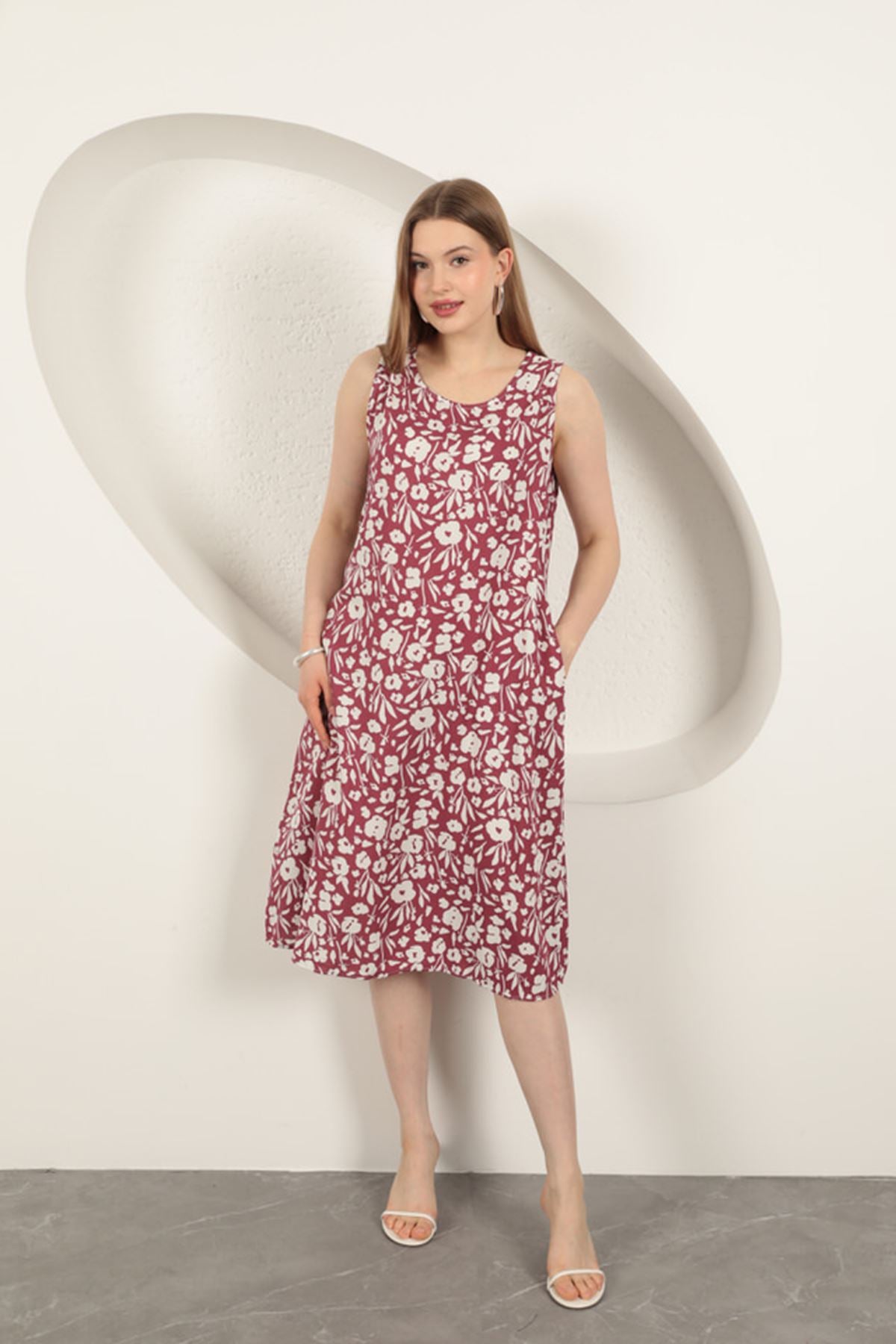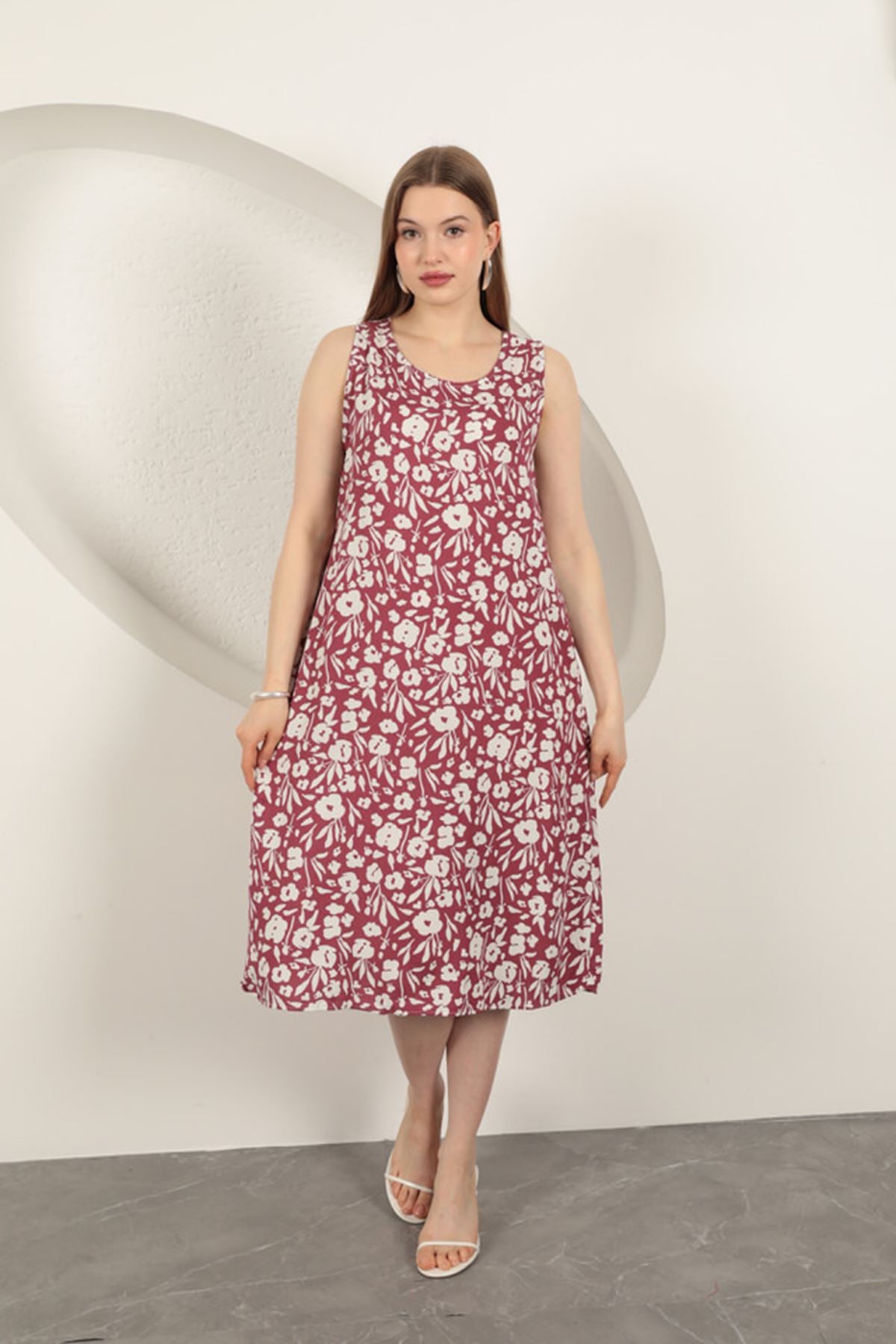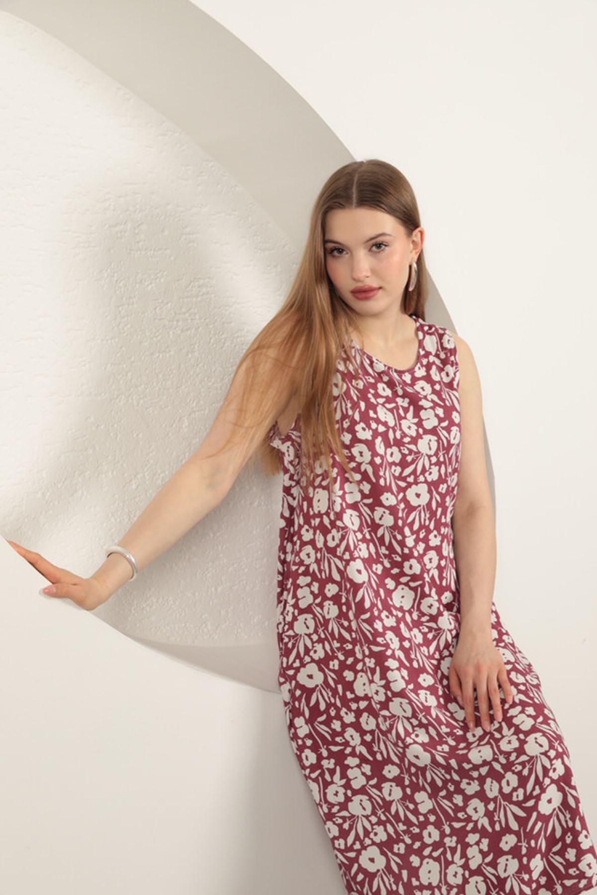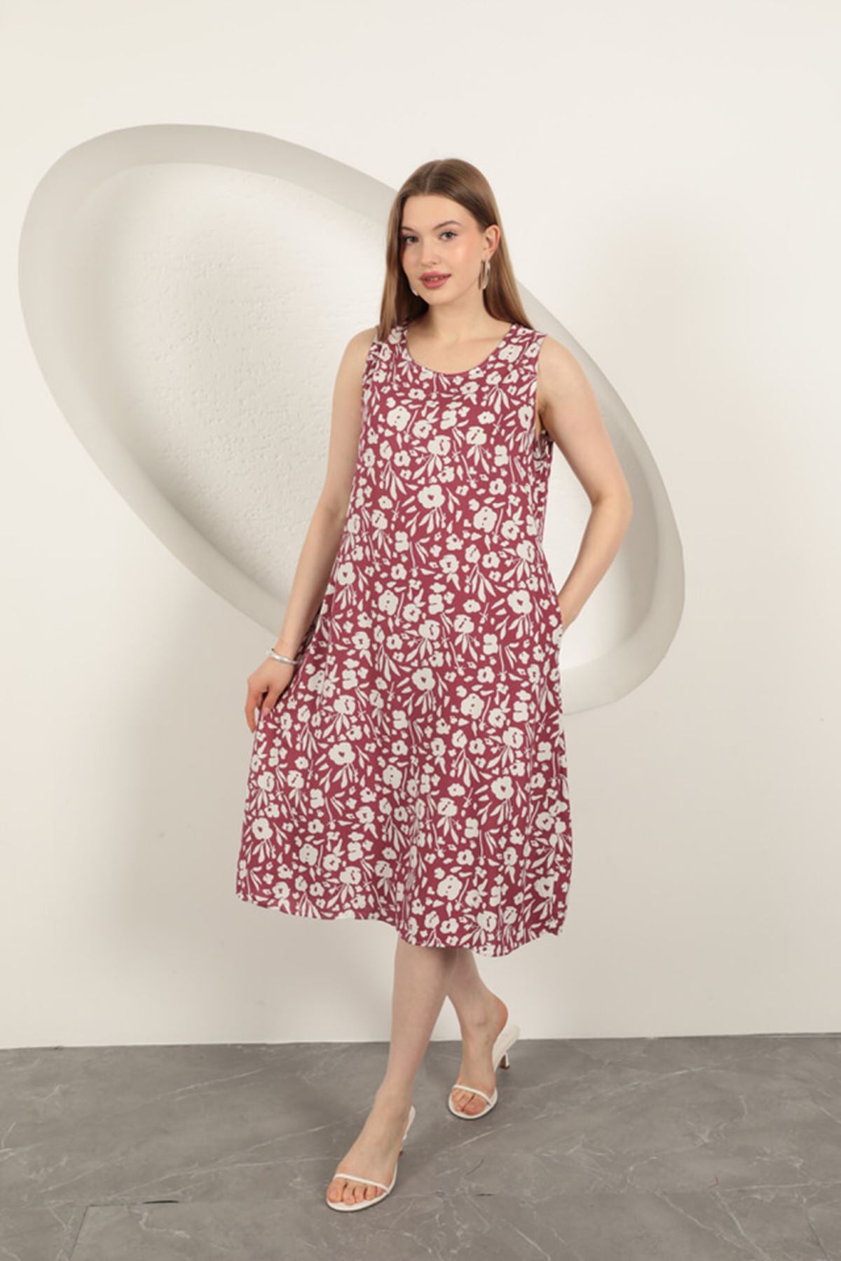 Diger82686Viskon Kumaş Çiçek Desenli Elbise-Mor