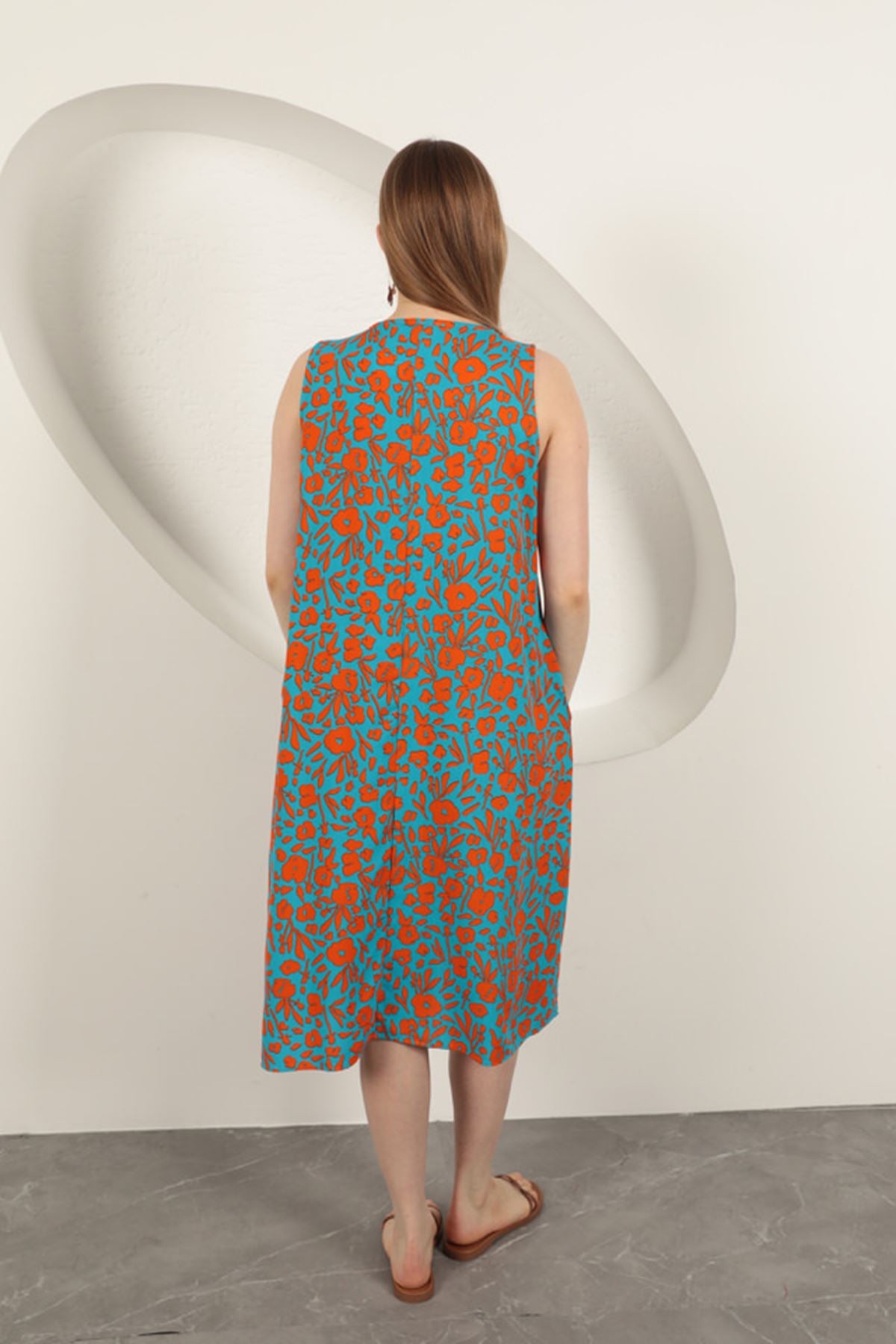 Diger82684Viskon Kumaş Çiçek Desenli Elbise-Oranj