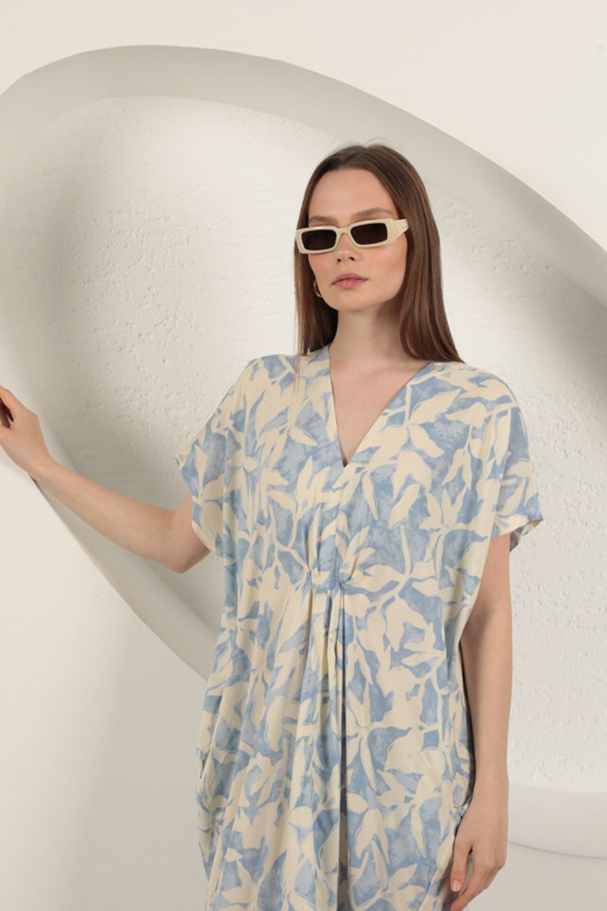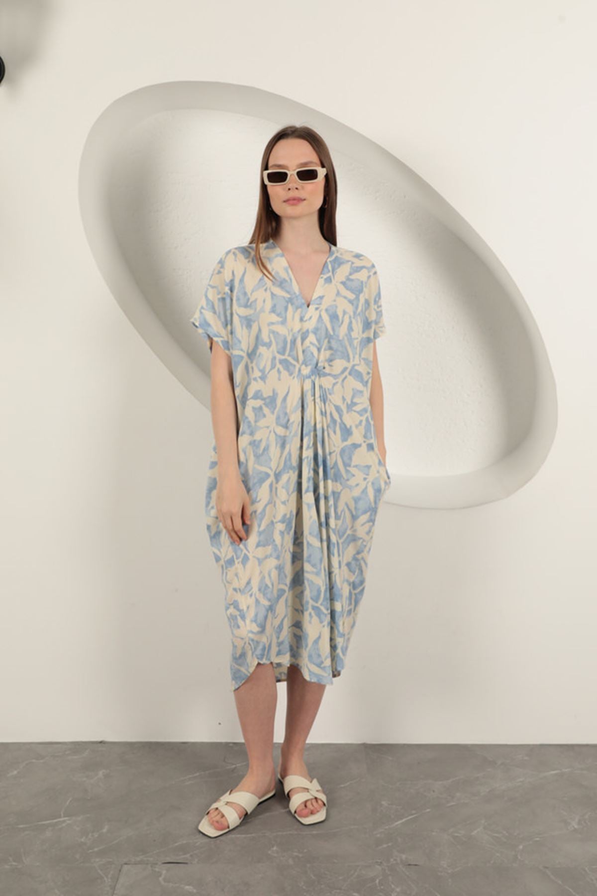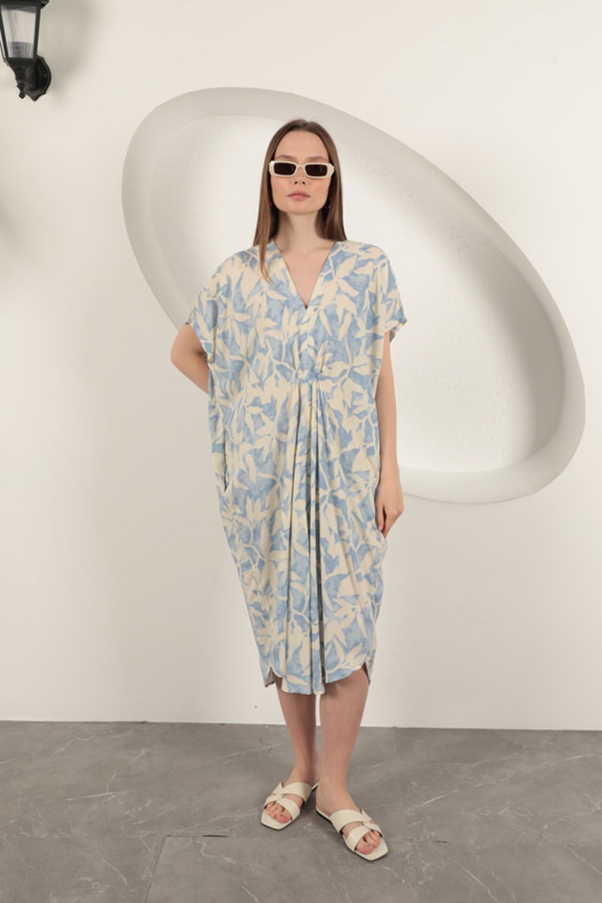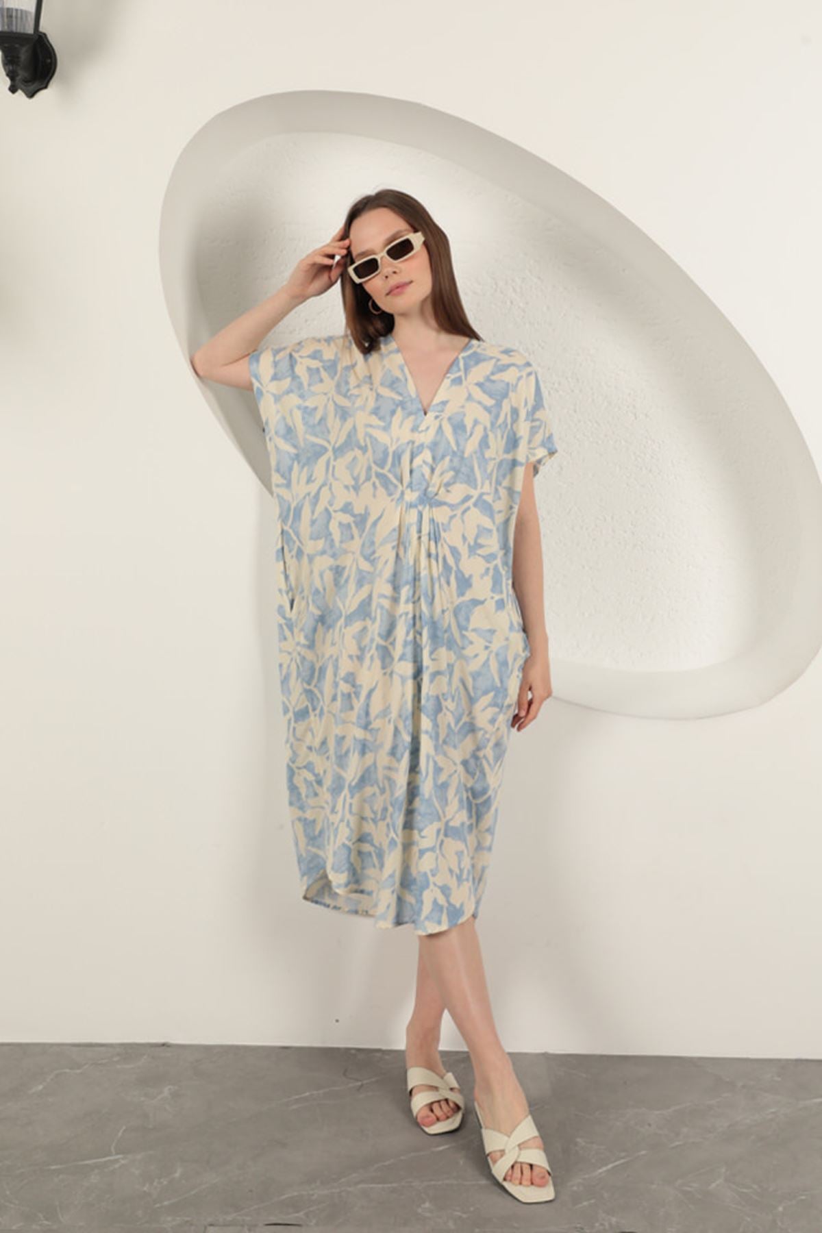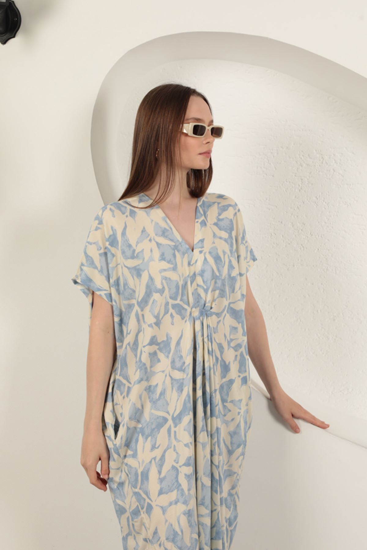 Diger83054Viskon Kumaş Desenli Elbise-Mavi