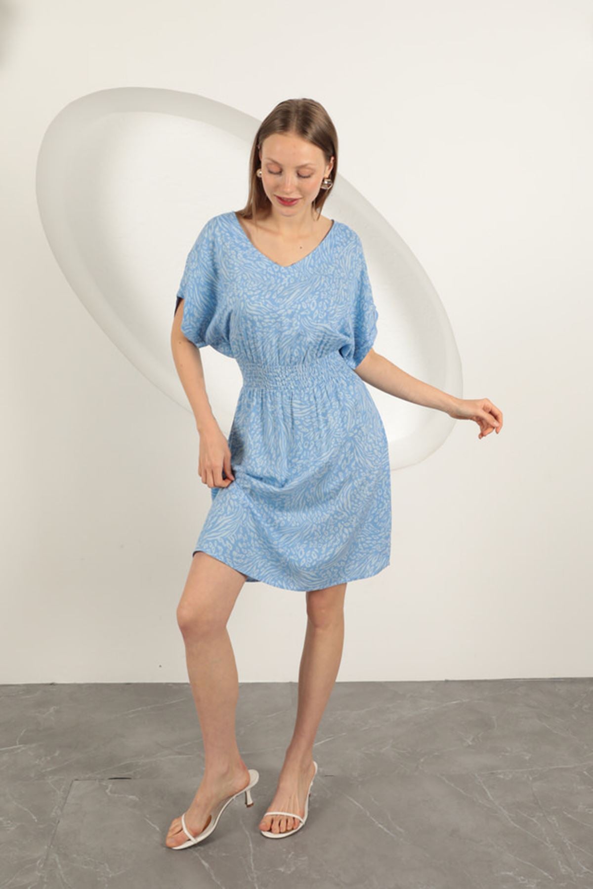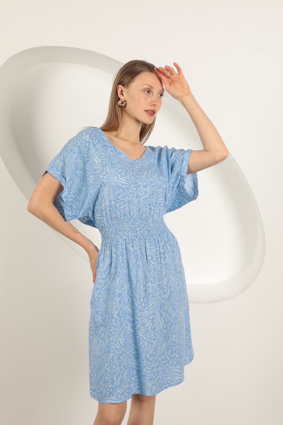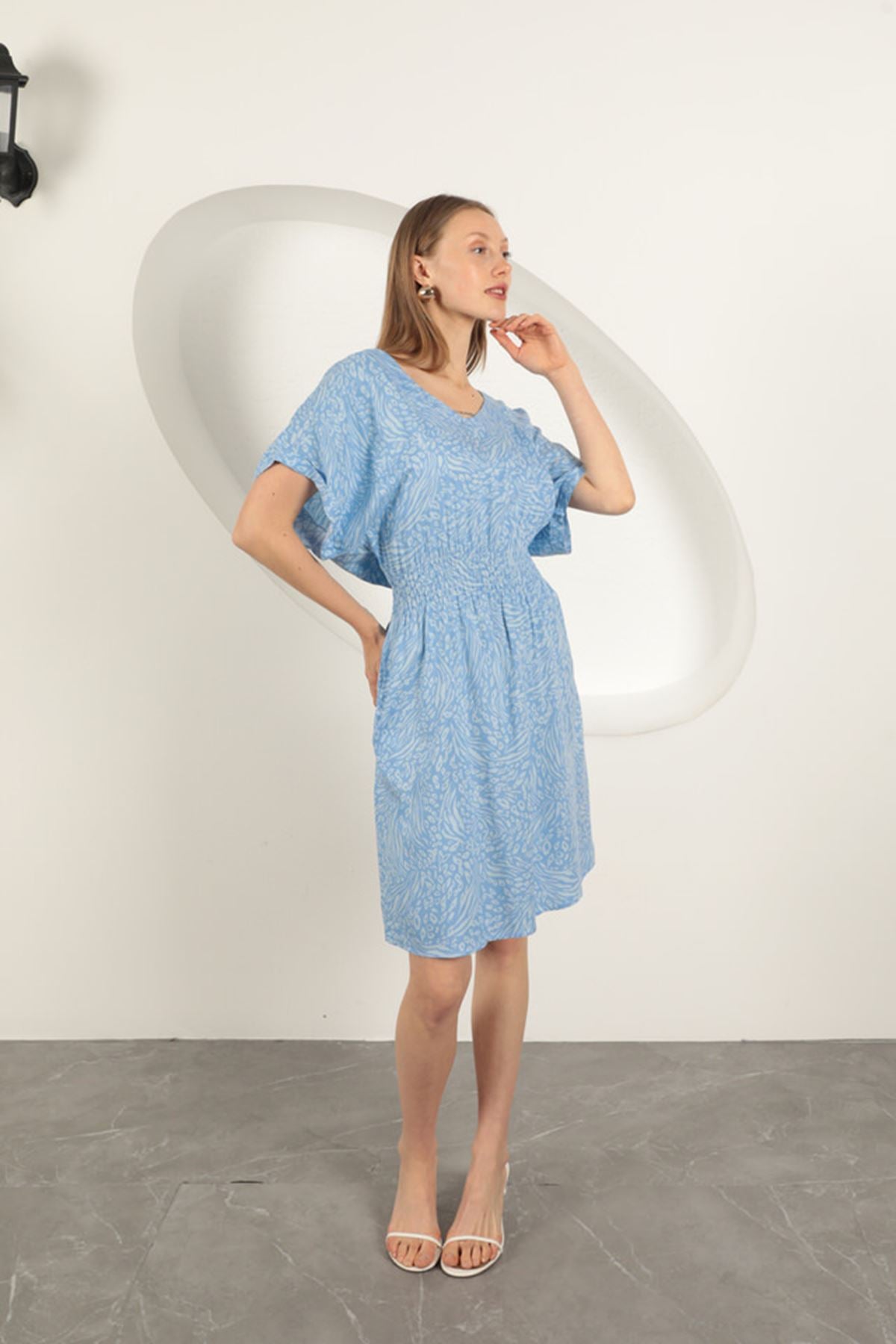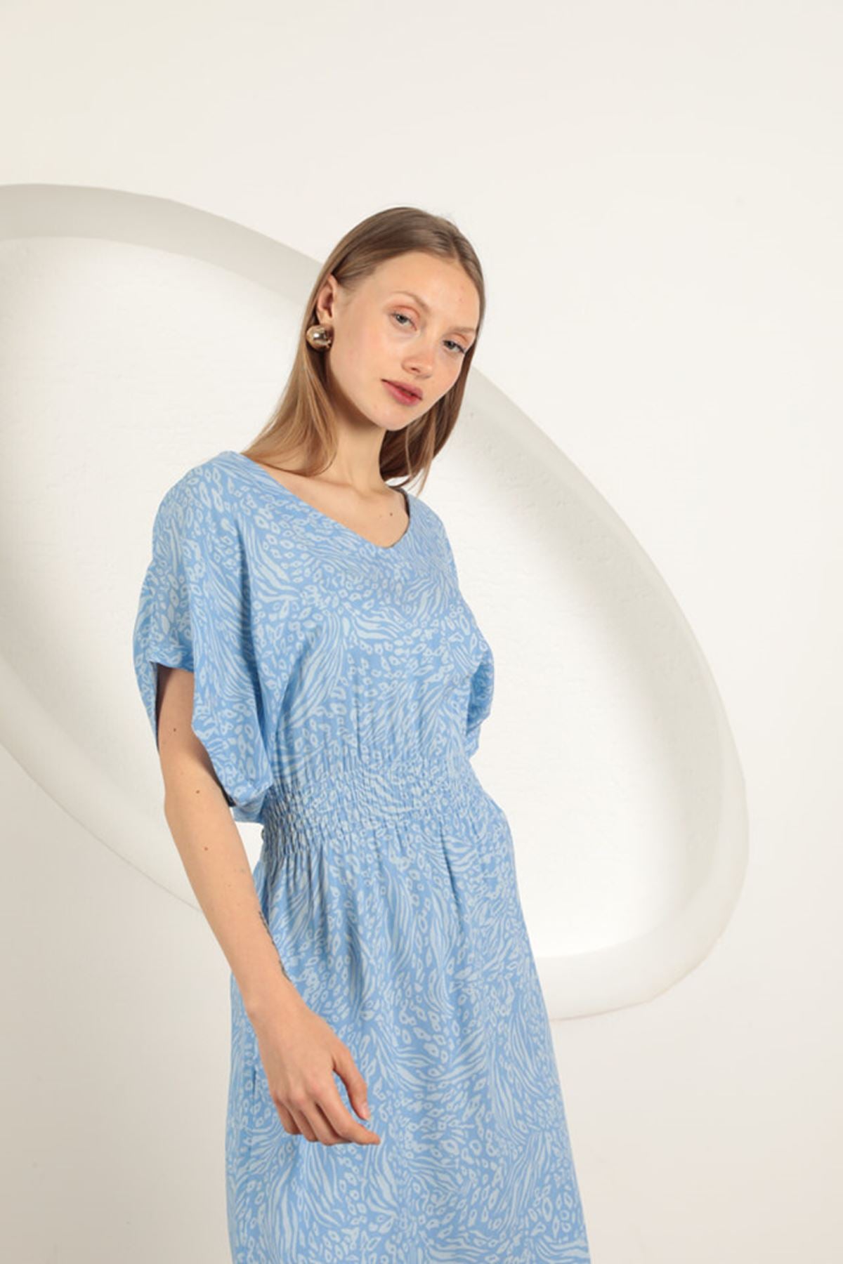 Diger84313Viskon Kumaş Desenli Elbise-Mavi
