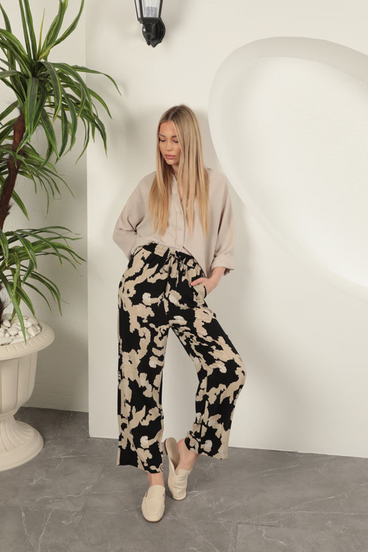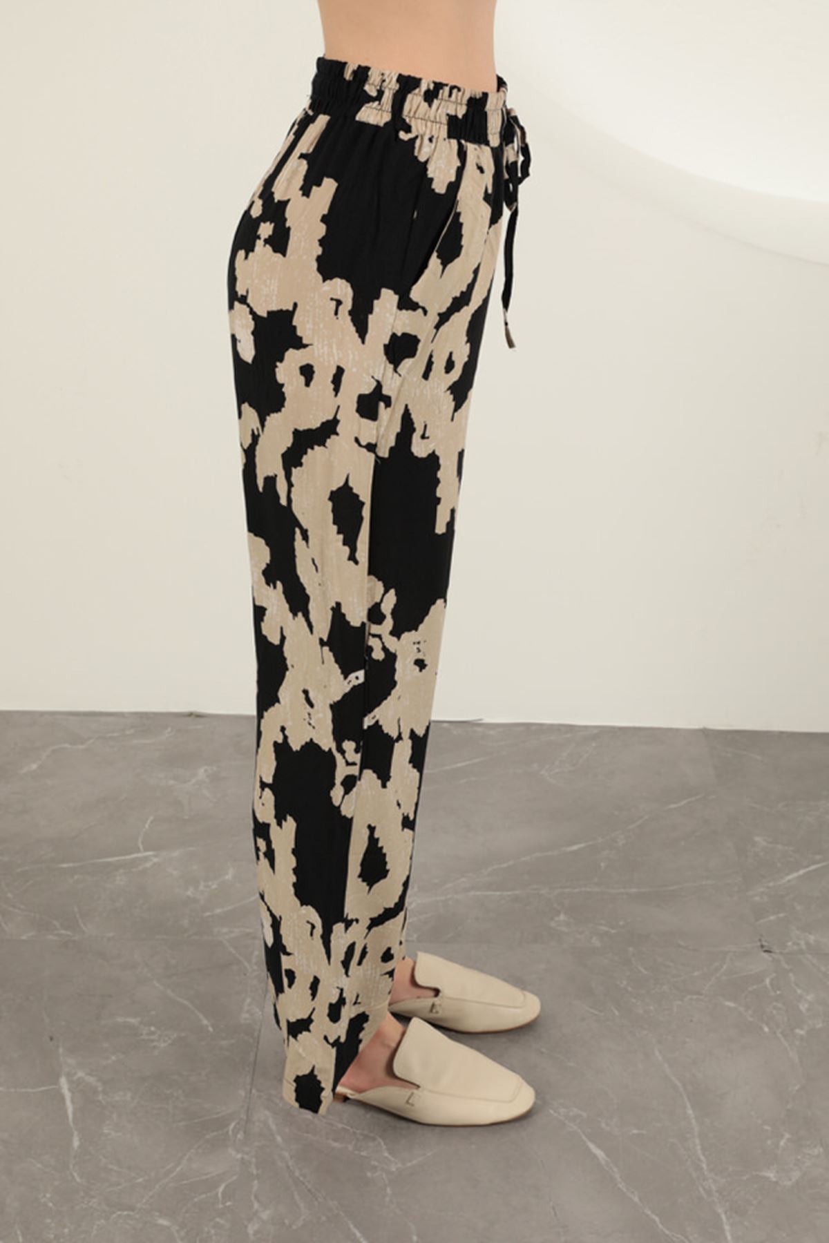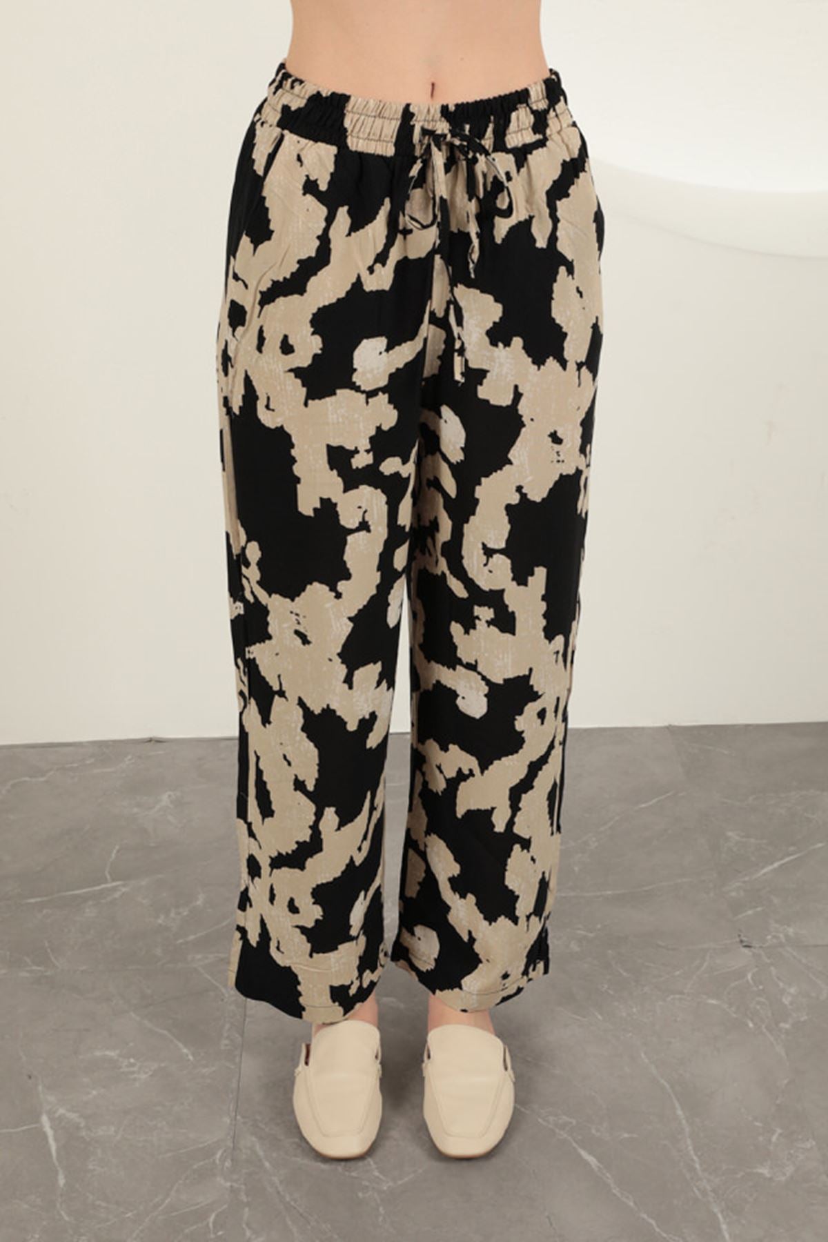 Diger81966Viskon Kumaş Desenli Pantolon-Siyah
