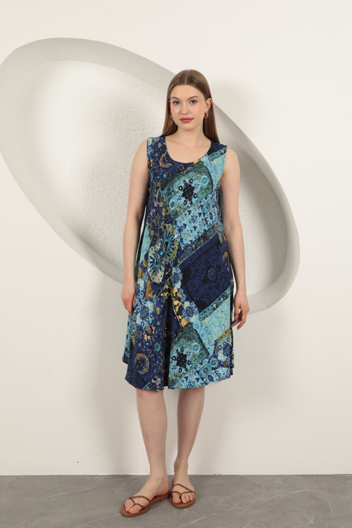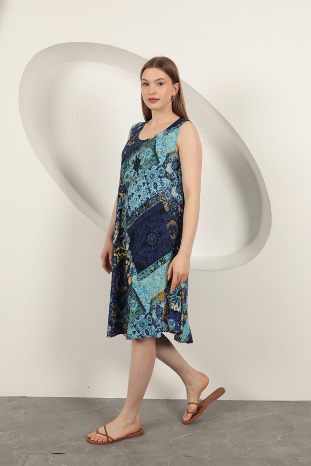 Diger82735Viskon Kumaş Etnik Desenli Elbise-Saks