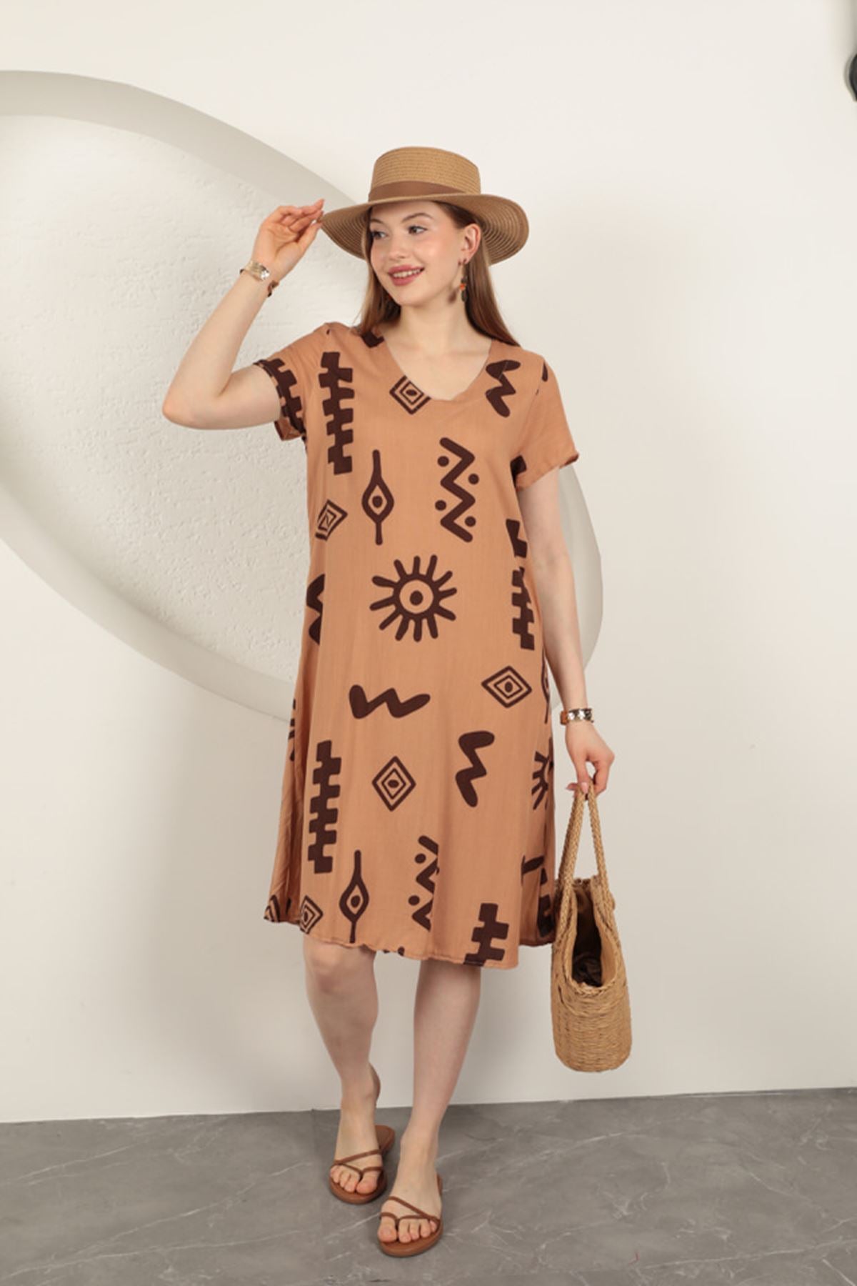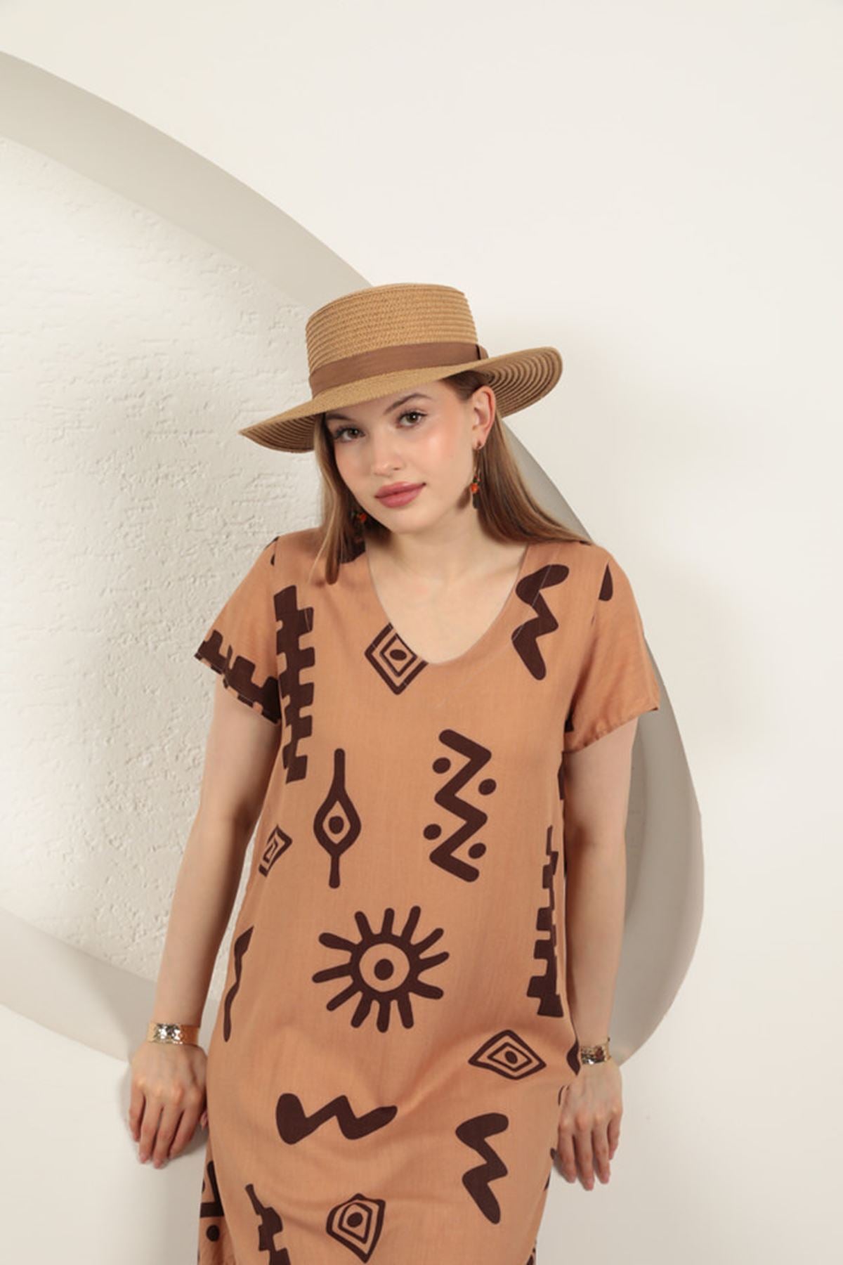 Diger82697Viskon Kumaş Etnik Elbise-Taba