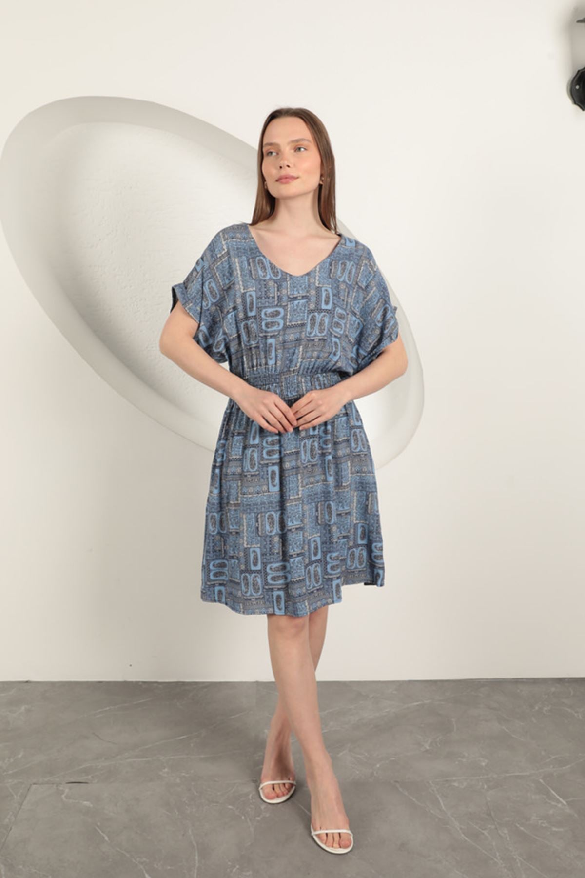 Diger84317Viskon Kumaş Gipeli Elbise-Saks