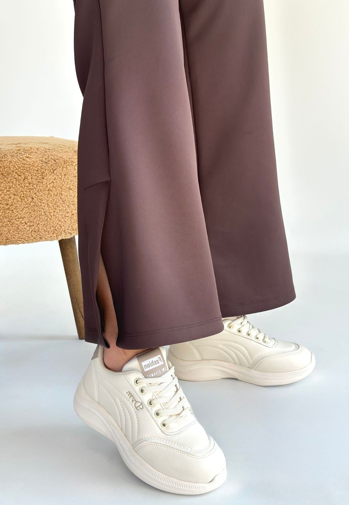 Yejja Bej Cilt Bağcıklı Spor Ayakkabı