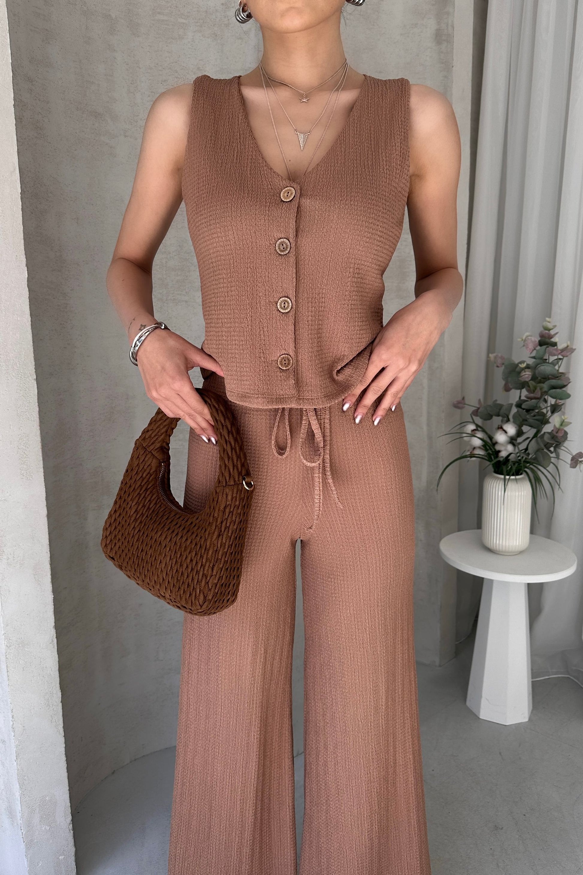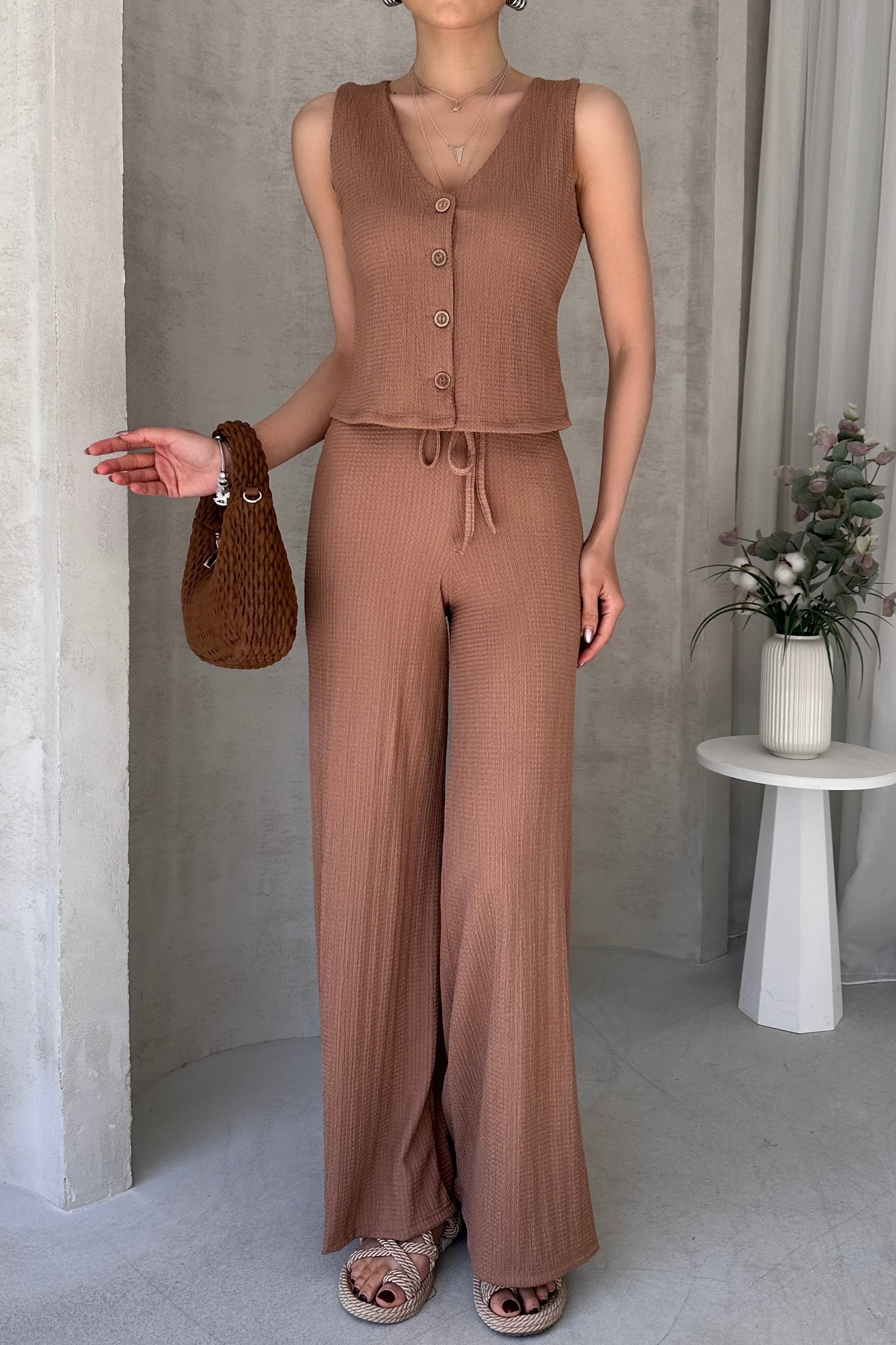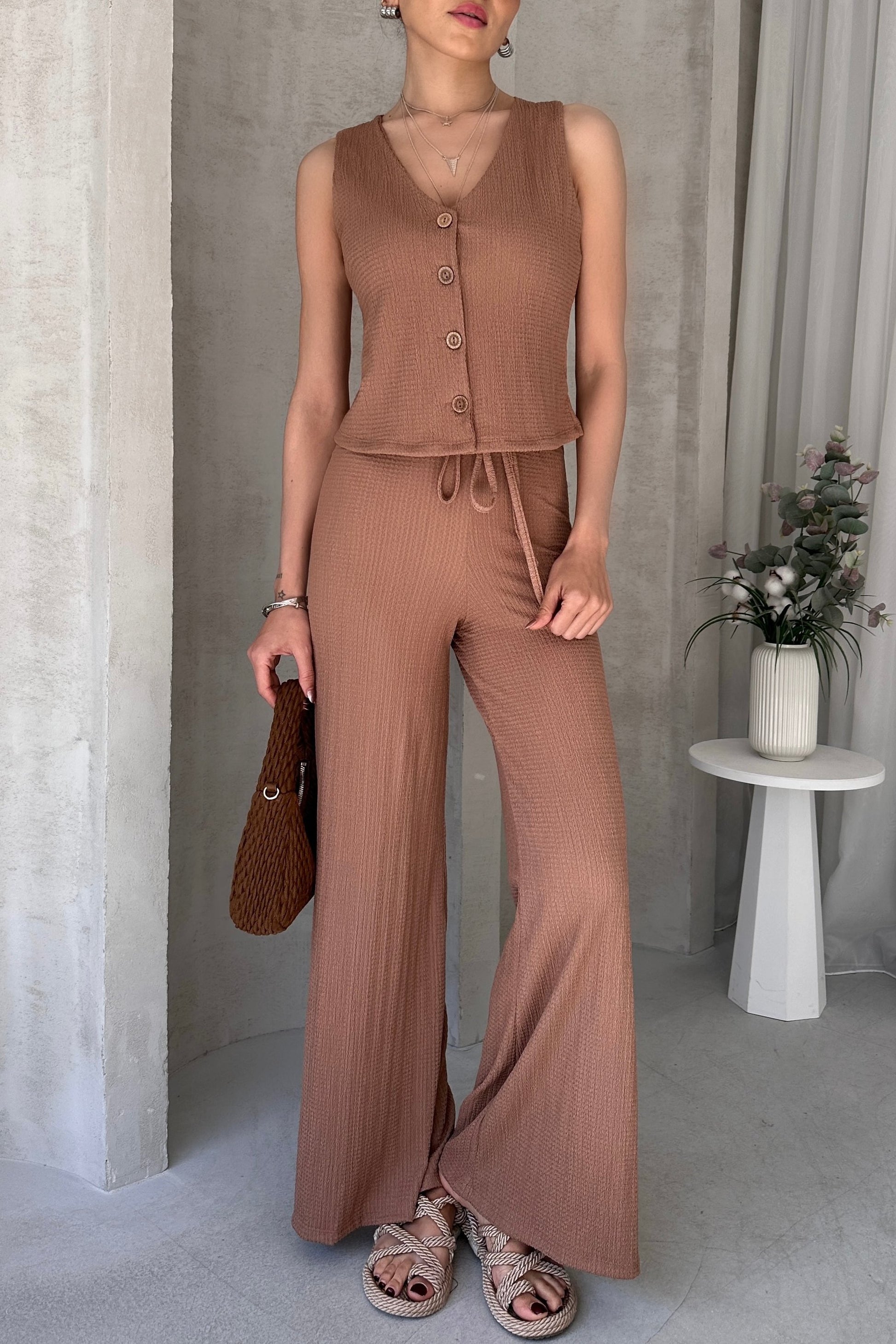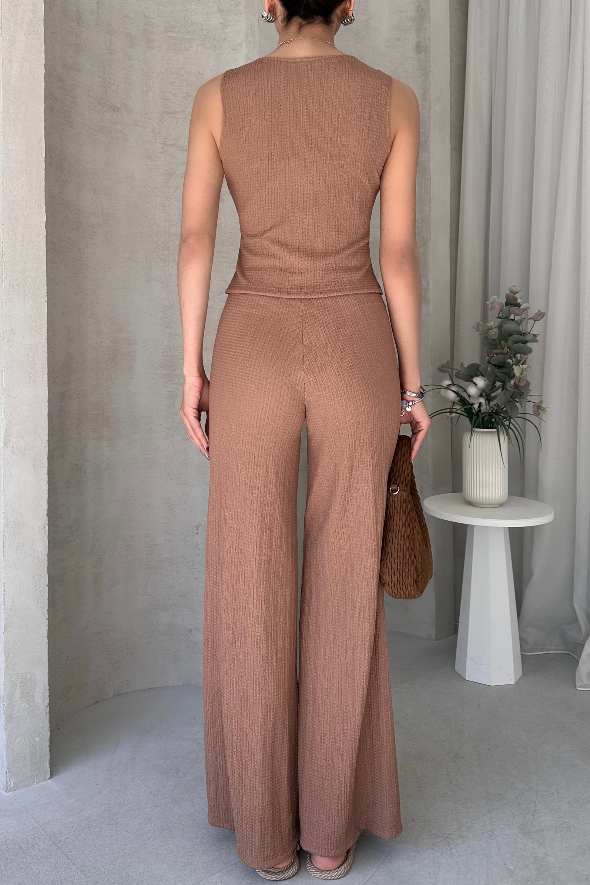 Yüksek Bel Rahat Pantolonlu Kolsuz Yelekli Takım